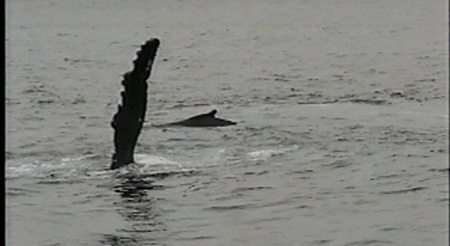 Sirius has black flippers—a rare trait in Atlantic humpback whales (A scene from Sirius' adoption video)